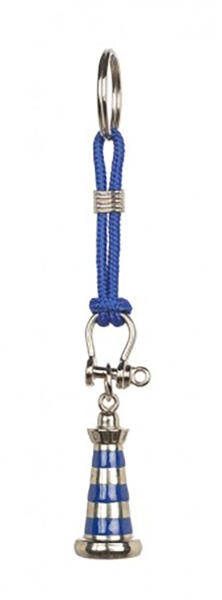 Króm világítótorony kulcstartó MÉRETE: 12 × 2 × 2 cm ANYAGA: fém, hajókötél CSOMAGOLÁS: kartondoboz Ismerje meg ezt a kulcstartót, amely kék hajókötéllel van díszítve. Ez a stílusos világítótorony kulcstartó tökéletes kiegészítője lehet mindennapi tárgyainknak, különösen azok számára, akik a tenger és a vitorlázás szerelmesei. A világítótorony kulcstartó