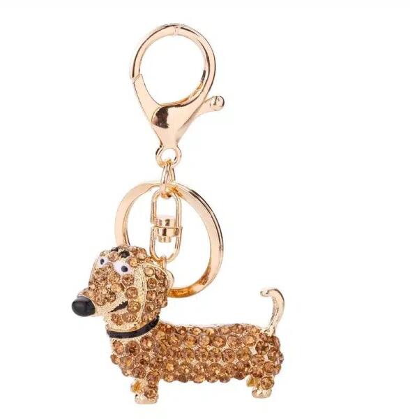 Ez az elegáns, kiskutya formájú kulcstartó tökéletes választás mindazoknak, akik szeretik a stílusos és aranyos kiegészítőket. Kutyás kulcstartó A kulcstartó központi eleme egy részletesen kidolgozott tacskó figura, amelyet apró, csillogó kövek borítanak, ezzel különleges fényt és ragyogást kölcsönözve neki. A kristályszerű díszítés minden szögből megcsillan a