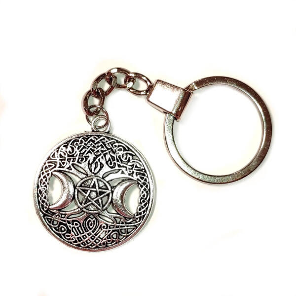 Hold Istennő Wicca Pentagram kulcstartó. Paraméterek: Medál mérete: kb 4 cm, anyaga fémötvözet. Kulcstartó karika típus eltérhet a képen láthatótól, készlet szerint küldjük. Ékszeralapok anyaga: rozsdamentes acél.