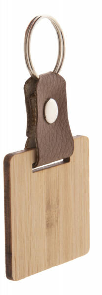 Bambusz furnérból és műbőrből készült kulcstartó fém kulcskarikával.