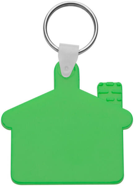 Házikó formájú, műanyag kulcstartó fém kulcskarikával.