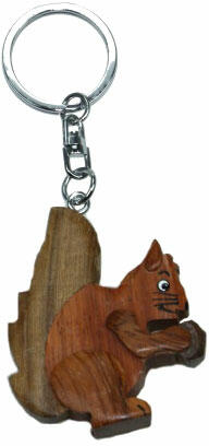 Kedves állatos kulcstartó, fa kulcstartó mókus 5cm.