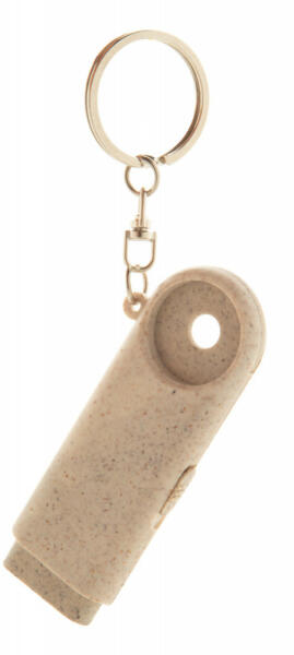Környezetbarát búzaszalma műanyag kulcstartó bevásárló érmével és 2 LED-es lámpával. Gombelemmel szállítjuk.