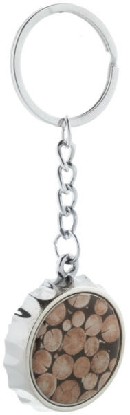 Üveg kupak alakú fém kulcstartó sörnyitóval. Fekete díszdobozban. Felülete ideális epoxy matricázáshoz.