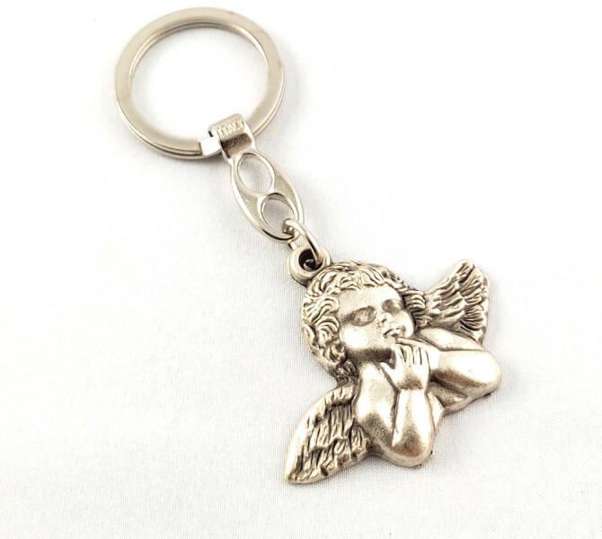 Gábriel Őrangyal kulcstartó , színe ezüst, mérete 9 cm, hátoldala fémesre csiszolt.