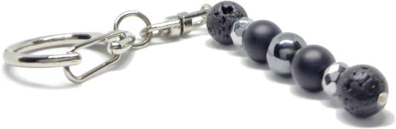 Kiváló minőségű valódi bazalt ásványból készült ásvány kulcstartó. A hólyagos bazalt egyedi, texturált felülete és sötét árnyalatai különleges megjelenést adnak, miközben az erő és az állhatatosság szimbólumaként viselhető. A kulcstartó valódi hólyagos bazalt, ónix matt, hematit 8-9 mm ásványból és hematit dísszel készült. Az ásvány, kulcstartó formáb