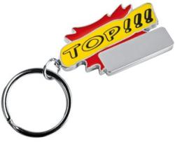 Fém kulcstartó színes lakkozott felülettel. Emblémázását lézergravírozással javasoljuk.