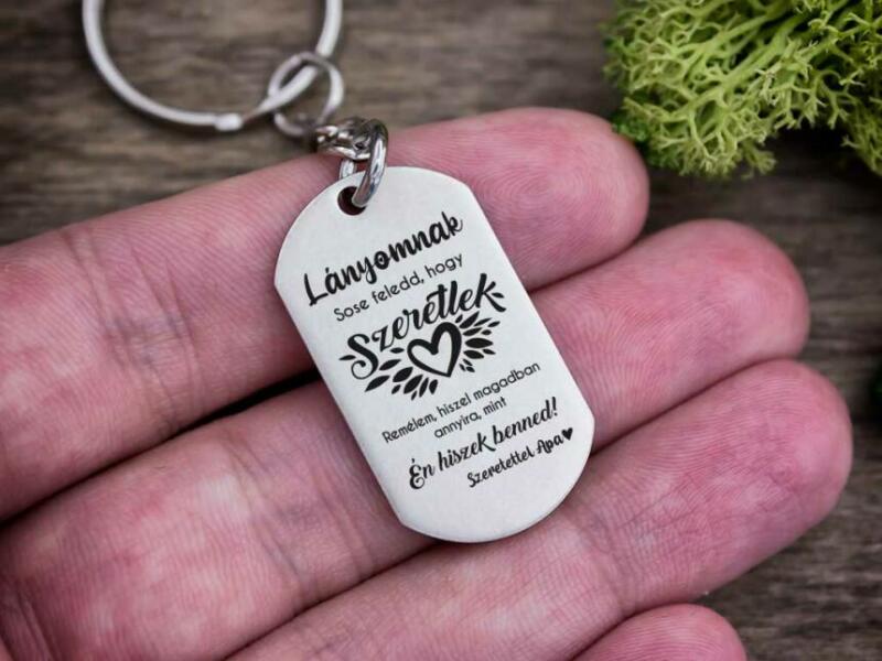 " Lányomnak. Sose feledd, hogy szeretlek. Remélem, hiszel magadban annyira, mint Én hiszek benned! Szeretettel Apa " feliratos acél téglalap medálos kulcstartó Számotokra állítottunk össze egy kedves meglepetést! Univerzális ajándék ez a kulcstartó, melynek szerettünk biztosan örülni fog. Fontosnak lenni valakinek óriási energiát adhat. Sokszor ugyan nehéz ezt kimondani. Meg