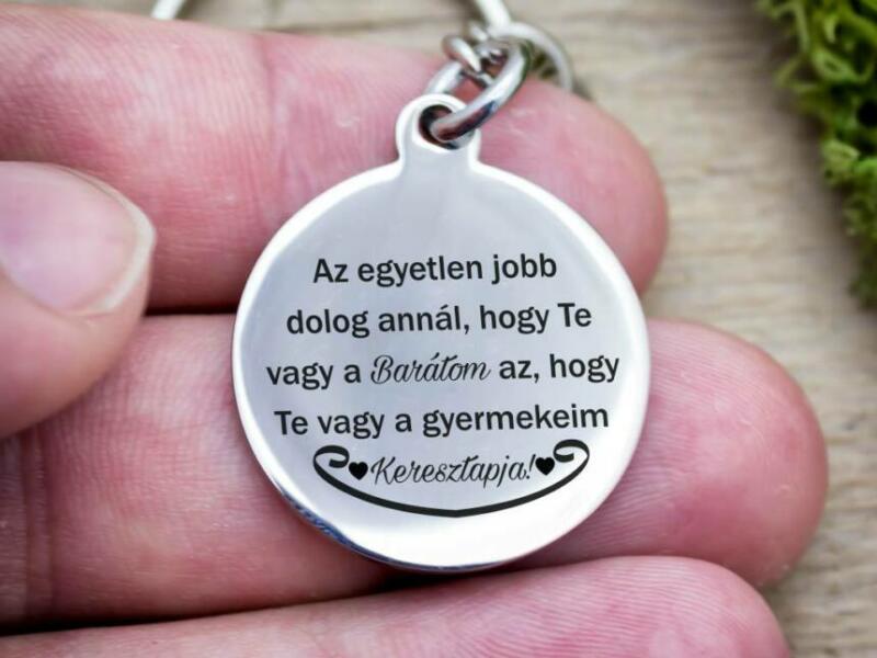 " Az egyetlen jobb dolog van annál, hogy Te vagy a Barátom az, hogy Te vagy a gyermekeim Keresztapja! " feliratos acél kör medálos kulcstartó A számotokra állítottunk össze egy kedves meglepetést! A „második apuka, aki nem csak a hasznos dolgokat, de a csíntalanságot is tanítja majd. Akivel jókat mókázhatsz játék közben, családi összejöveteleken. Kiváló ajándék lehet
