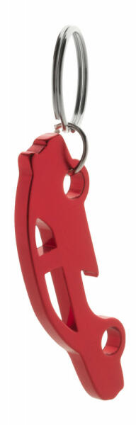 Alumíniumból készült, autó formájú kulcstartó üvegnyitó funkcióval.