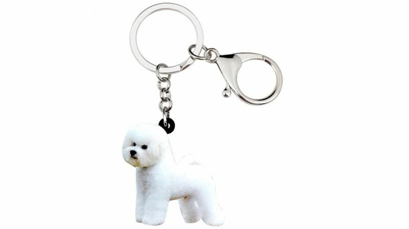 Akril-fém kutyás kulcstartó - Bichon frisé Méret: 4,0cm x 4,0cm Súly: 15,5g