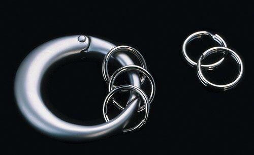 Rozsdamentes acélból készült kulcstartó, 5 karikával, ajándékdobozba csomagolva. Felhívjuk figyelmüket, hogy a termék dobozán előfordulhat karcolás, a termék sértetlen.