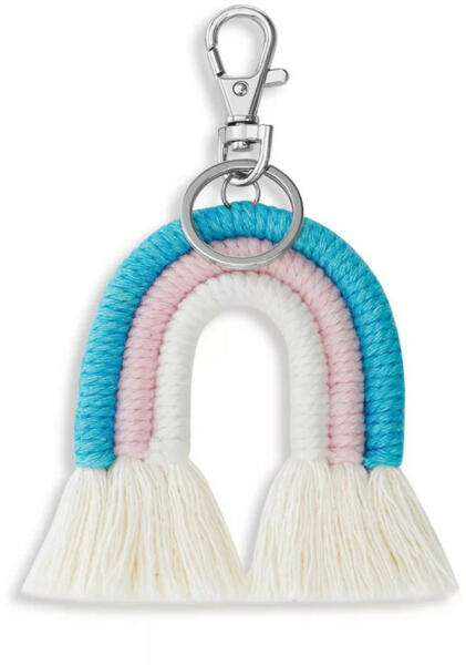 Macramé technikával készült szivárvány kulcstartó. Magassága: 12 cm Szélessége: 6 cm
