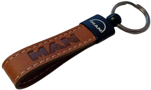 Exkuzív bőr kamionos kulcstartó tartós fém foglalatban. Mérete: (kulcskarika nélkül) 78x20mm