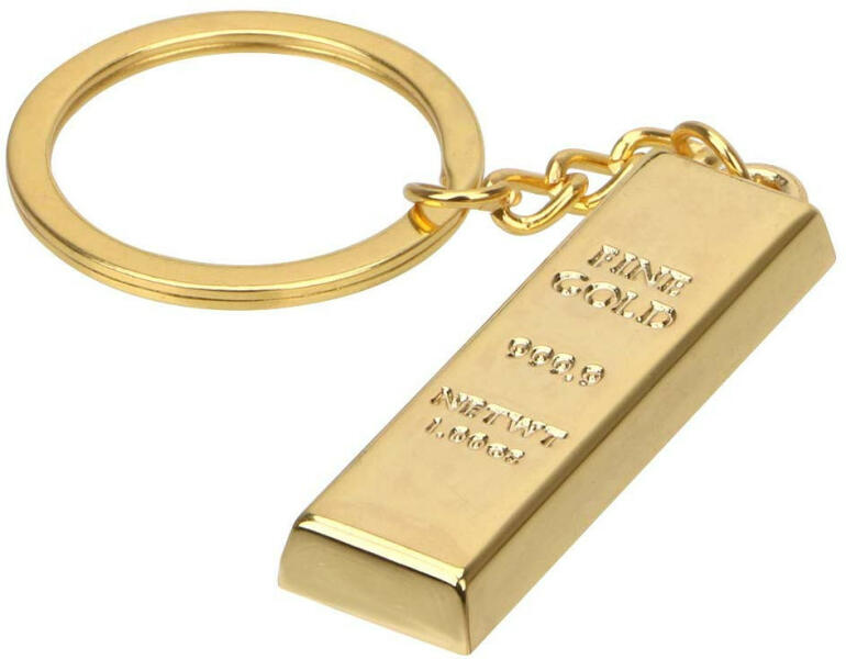 Céges ajándéknak kitűnő arany színű kulcstartó - aranyrúd forma, aranytömb kulcstartó gravírozható cégajándék. Arany kulcstartó.