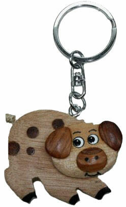 Kedves állatos kulcstartó, fa kulcstartó malac 5cm.