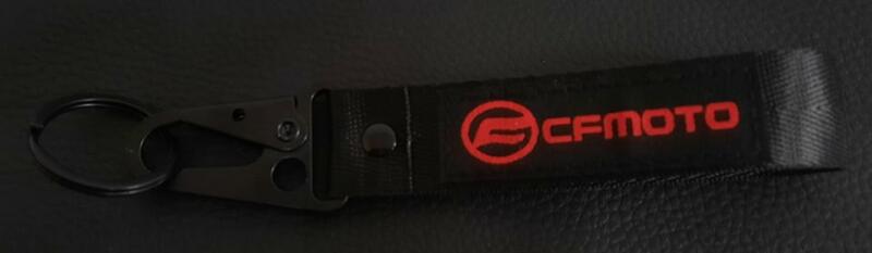 CFMOTO motoros kulcstartó karabineres hímzett pánttal PRÉMIUM CFMOTO motoros kulcstartó karabineres hímzett pánttal PRÉMIUM Erős szövet anyagú kulcstartó CFMOTO mintával. A minta nem vasalt, hanem bele van hímezve. A kulcstartó tökéletes ajándék minden motorosnak. Nem nehéz így menet közben sem zavaró ha fent van a kulcsok mellett. Minta van mindkét oldalán , a kulcstartó