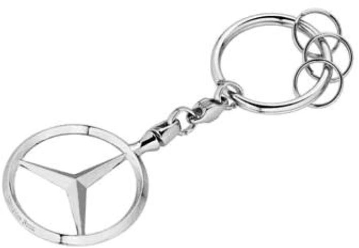 MERCEDES AJÁNDÉKTÁRGY, MERCEDES KULCSTARTÓ, A GYÁR ÁLTAL FORGALMAZOTT TERMÉK . Fényesre csiszolt öntött cinkből készült Mercedes brüsszeli kulcstartó. Klasszikus kivitelű Mercedes-Benz kulcstartó hagyományos Mercedes csillaggal. Magas fényű polírozott kivitel, 3 kis kulcskarikával. Praktikus ajándék Mercedes tulajdonosok részére. Anyaga: présöntött cink magas fényű p