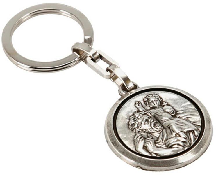 Szent Krtistóf dombornyomott kulcstartóKulcstartó, dombornyomott Szent Kristóffal (Reprebus) Az utasok, vándorok, hajósok, kincskeresők védőszentje