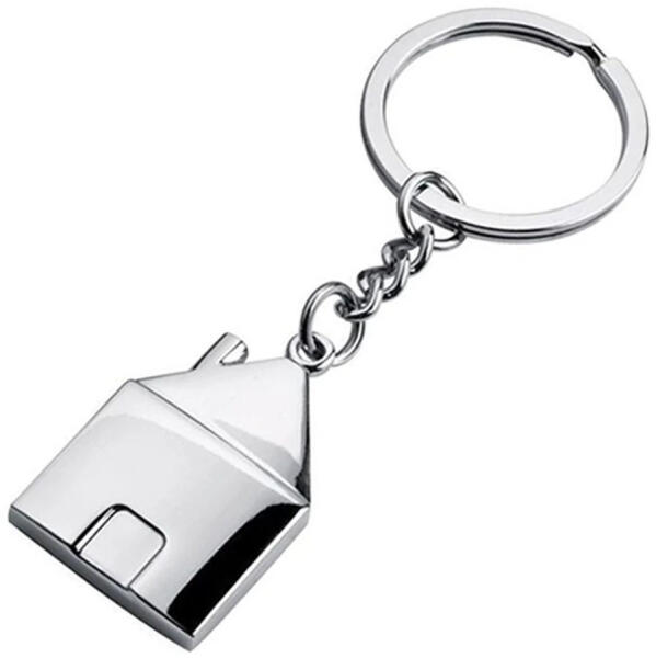 Termék jellemzői: Ház alakú kulcstartó, sima fényes bevonattal. Mindkét oldala körvonalasan gravírozható: szöveg/logo/grafika. Fekete kartondobozba csomagolva szállítjuk. Gravírozási technika : Körvonalas (mechanikus) Méret:34x47mm Anyaga : Fém, fényes króm borítással. Kulcshoz való csatlakozás:hagyományos kulcskarika.