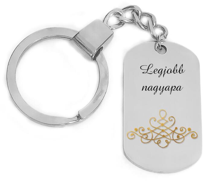 Kapszula alakú fém kulcstartó. Fekete díszdobozban szállítjuk.