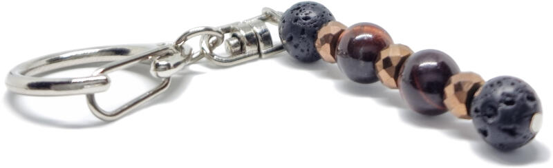 Kiváló minőségű valódi bazalt ásványból készült ásvány kulcstartó. A hólyagos bazalt egyedi, texturált felülete és sötét árnyalatai különleges megjelenést adnak, miközben az erő és az állhatatosság szimbólumaként viselhető. A kulcstartó valódi hólyagos bazalt, macskaszem 8-9 mm ásványból és hematit dísszel készült. Az ásvány, kulcstartó formában viselv