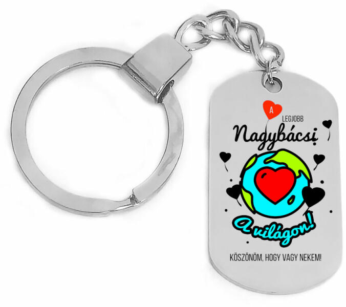 Szublimácios MDF téglalap lakkbevonattal. Mérete: 4cm x 2,8cm x 0,3cm. Mérete láncos kulcstartó karikával 10cm. Nikkelezett kulcstartó lánccal, forgószemes hullámosított kulcskarikával, aminek az átmérője 25mm, 10 mm - es összekötő szemmel. Paraméterek MDF téglalap nélkül Méret: 25x52mm Anyaga: fém. Szín: nikkelezett. Csomagolás mérete: 13,5cm x 5cm x 0,5cm Papírkarton