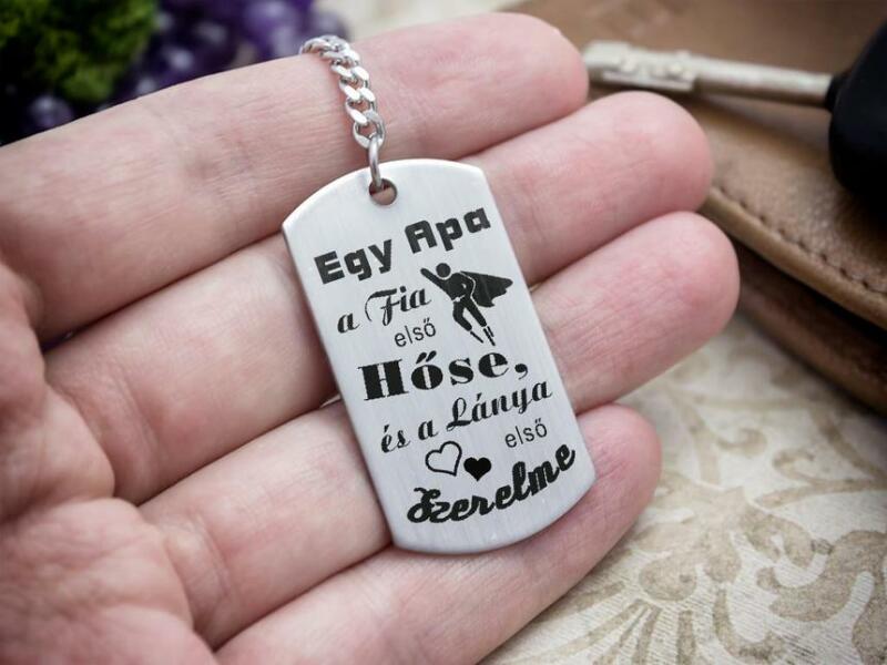 " Apai szerep " acél szögletes medálos kulcstartó A számotokra állítottunk össze egy kedves meglepetést! Egy apa a fia első hőse, és a lánya első szerelme. Példakép, aki erős, bátor, akire fel lehet nézni, aki biztonságot sugároz és végtelen szeretetet. Aki a gyermekei számára a legszuperebb! Ajándékozzátok meg Apát, ettől a kulcstartótól a férfi szív is ellágyul
