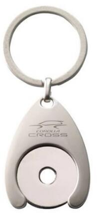 TOYOTA COROLLA CROSS ÉRMÉS KULCSTARTÓ , A GYÁR ÁLTAL FORGALMAZOTT TERMÉK. Toyota Corolla Cross emblémás érmés kulcstartó, amely a legtöbb bevásárlókocsiba alkalmazható. Toyota Corolla Cross feliratú acél kulcstartó. Fontos kulcsain kívül, ami a kulcstartóján található, még bevásárlásnál sem jön zavarban. Cikkszám : TBMCORC00210