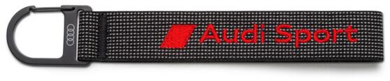 AUDI AJÁNDÉKTÁRGY, AUDI SPORT KULCSTARTÓ, A GYÁR ÁLTAL FORGALMAZOTT TERMÉK Ez az Audi Sport kulcstartó ideális kiegészítő a márka rajongói számára, különösen a sportos vonalat kedvelőknek. A kulcstartó fekete és piros színkombinációja stílusos és dinamikus megjelenést biztosít. A textil hurkon hímzett Audi Sport gyémántok találhatók, míg a kampón dombornyomott A