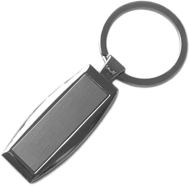Termék jellemzői: Divatos formatervezésű téglalap alakú kulcstartó, ezüstszínű kivitelben. Első oldalán matt függőlegesen szálcsiszolt betéttel, hátsó oldala fényes. Körvonalasan gravírozható. Fekete kartondobozba csomagolva szállítjuk. Gravírozási technika : Körvonalas (mechanikus) Mérete karikával együtt: 8,5 cm