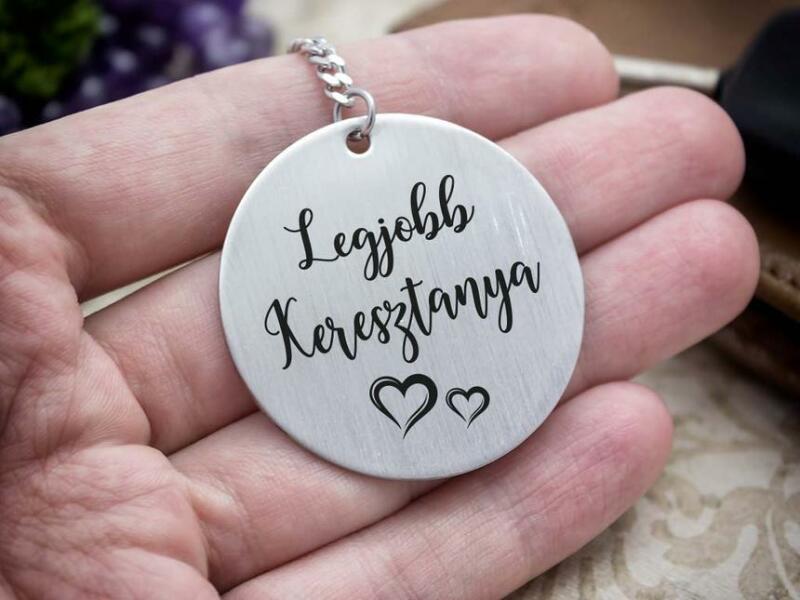 " Legjobb Keresztanya " feliratos acél kör medálos kulcstartó A számotokra állítottunk össze egy kedves meglepetést! Pótanyuka, akinek a feladata a nagymamához hasonlóan a kényeztetés. Ugyanakkor erős kötelék, akihez nagyobbacska korban is bátran lehet tanácsért fordulni. Kiváló ajándék lehet keresztelőre, vagy bármikor, amikor elmondanád, fontos neked. Ezt a nagyszerűa