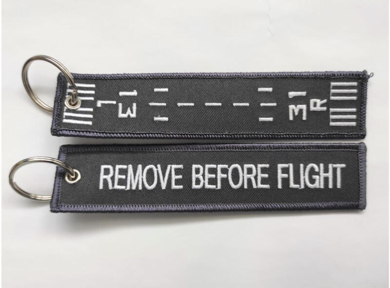 Runway 31R/13L Remove Before Flight kulcstartóMérete: 15 x 3,5 cm, 3 cm-es fém kulcskarikávalEgyik oldalon szürke alapon runway, másik oldalon szürke alapon fehér Remove Before Flight felirat.