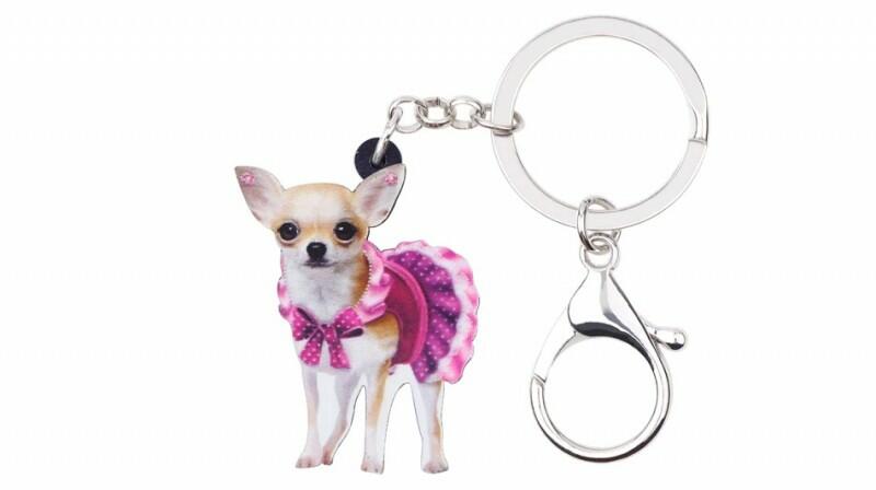 Akril-fém kutyás kulcstartó - Csivava (Chihuahua) Méret: 4,7cm x 3,0cm Súly: 13,9g