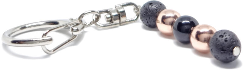 Kiváló minőségű valódi hólyagos bazalt ásványból készült ásvány kulcstartó. A hólyagos bazalt egyedi, texturált felülete és sötét árnyalatai különleges megjelenést adnak, miközben az erő és az állhatatosság szimbólumaként viselhető. A kulcstartó valódi hólyagos bazalt, rosegold hematit, ónix 8-9 mm ásványból készült. Az ásvány, kulcstartó formában vise