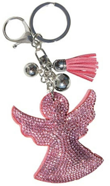 angyal formájú kulcstartó angyal alakú bőr kulcstartóegyik oldalán csillám berakássalacél kulcskarikával, karabinerrelbojttal, rövid lánccal