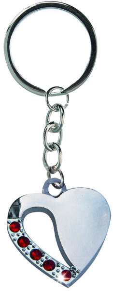 szív formájú kulcstartó szív alakú fém kulcstartóstrasszkő berakássalacél kulcskarikávalrövid lánccalgravírozható
