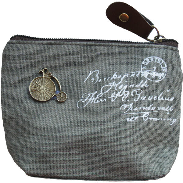 Szürke színű biciklis pici pénztárca. A pénztárca vászonból van. Mivel kicsi, ezért könnyedén elfér egy kisebb táskában is. Cipzáros, egy rekeszes. Vedd meg magadnak, de ajándéknak is ideális. Mérete: kb. 10,5 x 8 x 4 cm