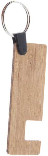 Mobiltelefon-tartó kulcstartó bambusz furnérból, fém gyűrűvel.