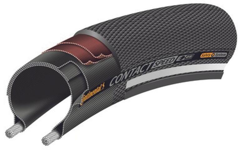 Continental Contact Speed 622-37 (700x37C) külső gumi (köpeny), defektvédett (Double Safety System Breaker), E25, 180TPI, 495g Sebesség és kényelem, mindez egy gumiabroncsban tökéletes megoldás a puritán városi sprinterekhez, az egysebeséges kerékpárokhoz és a fitnesz kerékpárokhoz dupla defektvédelmi réteg, jó tapadás és könnyű felépítés az érdes és gyors slick profi