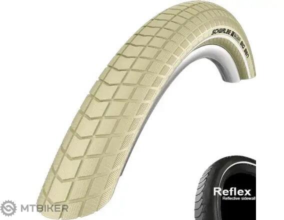 Schwalbe Big Apple gumipersely. méret hüvelykben 26x2,15" méret mm-ben 55-559 dróttalp krémszínű oldalán fényvisszaverő csík KevlarGuard védelem Active Line sorozat súlya 910 g nyomás 2,0 - 4,0 bar EPI 50 Szín : barna Shell sarok : drót Kabát kialakítása : belső ETRTO : 55-559 Sorozat : Active Line Technológia : KevlarGuard Fényvisszaverő csík : igen Javasolt nyomás : 2,0-