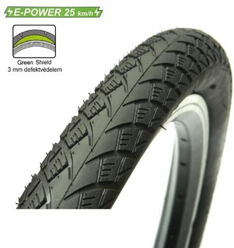 Tulajdonságok Modern forgásirányos városi kerékpár gumi, Green Shield 3 mm defektvédelemmel, Fényvisszaverő csíkkal, Elektromos kerékpár kompatibilitás. ETRTO: 42-622 Súly: 400 g 25db / csomag %