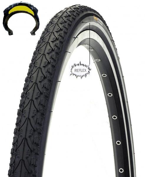 A KENDA 26x1,75 K-935 KHAN K-SHIELD kerékpár külső egy igazi minőségi köpeny, ami garantáltan nem hagy cserben a hosszú túrák során. A nagyobb biztonság érdekében fényvisszaverő csíkkal ellátott a kerékpár külső . A KENDA 26x1,75 K-935 KHAN K-SHIELD kerékpár külső felülete speciális anyaggal bevont a nagyobb ellenállóság érdekében. A kerékpár külső egész évb