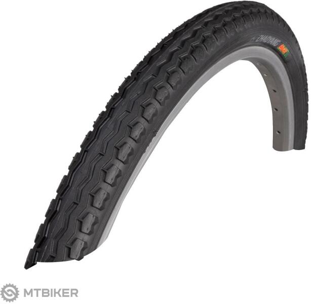 Univerzális kabát klasszikus kialakítással, minden körülményhez. A kövezett utakon való haladáshoz a központi folyamatos sáv csökkenti a gördülési ellenállást. Az oldalsó vízelvezető csatornák megfelelő tapadást biztosítanak még nedves körülmények között is. Az oldalsó kiemelkedések javítják a tapadást kanyarokban és könnyű terepen. A 27TPI gumiabroncs-konstr