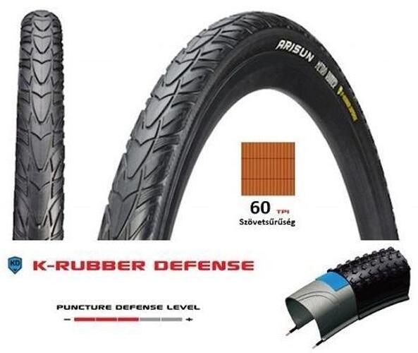 Tulajdonságok Méretek milliméterben: 44-559 Köpeny színezése: fekete + reflex csík Köpeny kialakítása: drótperemes Defektvédelem: KD Puncture Defense Level 3 Szövetsűrűség: 60 TPI Súly: g Nyomás tartomány: 35-65 PSI, 2,4-4,5 bár, 250-450 kpa Származási hely: Kína Köpeny peremátmérője: 26 inch 559mm Felhasználási terület: városi