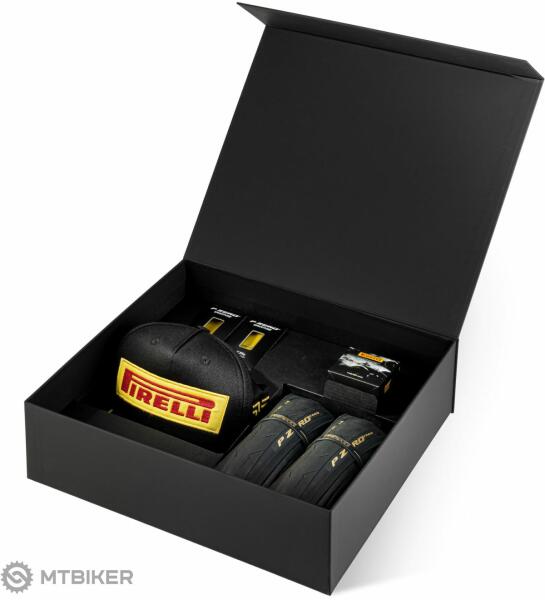 Pirelli 150th Anniversary Prestige Box, egy pár P Zero Race 700x26C Gold gumiabroncs Különleges limitált kiadás a rangos csomagból a Pirelli cég 150. évfordulójára. A prémium doboz számos ikonikus Pirelli terméket tartalmaz.