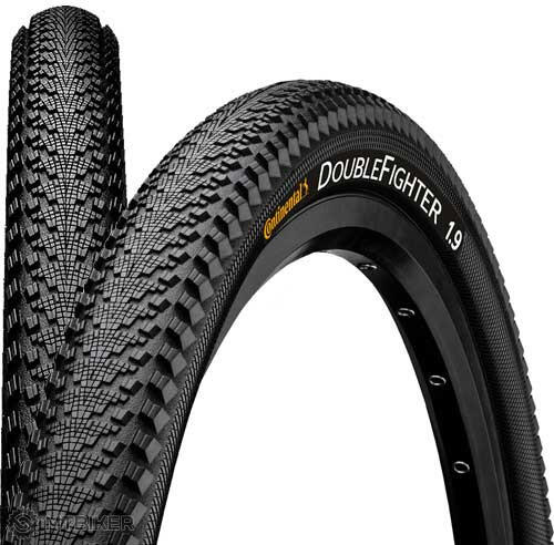 Continental Double Fighter III 27,5x2,00" abroncs Ennek az abroncsnak a fő célja a könnyű vezethetőség , de az oldalsó kiemelkedéseknek köszönhetően még így is el tud haladni az igényesebb terepen . Ez a gumi azonban otthonosan érzi magát kemény felületeken.