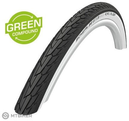 Schwalbe Road Cruiser 26x1,75" gumiabroncs fehér oldalfallal Városi, egyéni és dinamikus. A teljesen újratervezett Road Cruiser vonzó futófelület-kialakításának és számos színválasztékának köszönhetően lenyűgöző, 12"-től 28"-ig terjedő kerékpárokhoz. Az új Road Cruiser kivételes jellemzője a mintában rejlik, és a neve Green Compound. Megújuló és újrahasznosítot