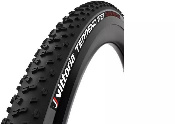 Vittoria Terreno Wet TNT 28 x 1,3 (622-33) cyclocross, gravel külső gumi (köpeny), kevlárperemes, defektvédett, TL-Ready, 410g, fekete-szürkeCyclocrossra és gravelre ajánlott külső gumi, kiválóan használható laza vagy nedves, sáros talajon. Sportolásra és versenyzésre tervezve. Nyitott mintázata miatt kitűnő az öntisztuló képessége. Graphene 1C összetétele csökkenti a g