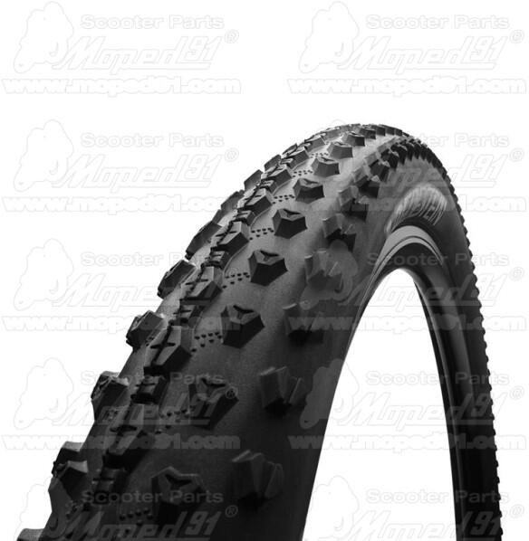 Continental Cross King 26 x 2,2 (55-559) MTB külső gumi (köpeny), drótperemes, E25, 700gKiváló allrounder, amely szívesen bizonyít a versenyeken is sokoldalú verseny- és túraabroncs biztos kanyartartással és kiegyensúlyozott gördülési tulajdonságokkal remek tapadás, könnyű futás - különböző technológiai megoldásokkal kapható finoman gördül, speciális profiljának k